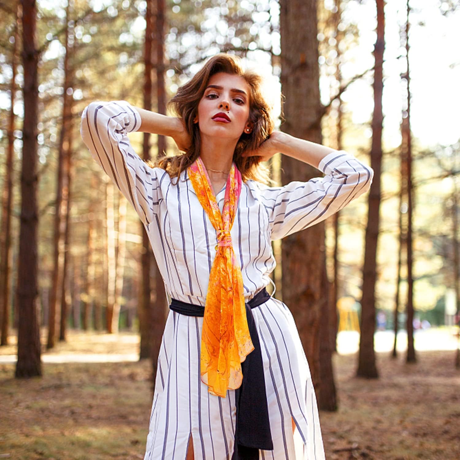 Elevate your everyday outfits with the exquisite charm of Herebuy’s Unique Women’s Floral Scarves. Made from high-quality chiffon, these scarves are delicately printed with vibrant flowers and elegant birds, adding a touch of sophistication to your wardrobe.